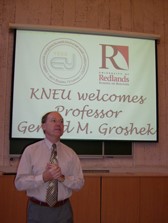 Лекція Джеральда Грошека «Роль міжнародної освіти» для студентів 1 курсу МЕіМ06 Лютого 2023р.![]() 3 Жовтня 2022 року студенти першого курсу факультету МЕіМ взяли участь в онлайн лекції «Роль міжнародної освіти» Джеральда Грошека, професора бізнес-школи університету Редлендс, Каліфорнія, США, присвяченої ролі міжнародної освіти в сучасному світі. Лекцію було організовано за сприяння кафедри іноземних мов та міжкультурної комунікації. Цього року початок навчання студентів першого курсу в університеті співпав із збройною агресією росії проти України. Невипадково, професор Грошек передав слова підтримки партнерського університету викладачам та студентам нашого закладу. Професор Грошек розповів про особливості глобального освітнього ринку та проаналізував виклики та можливості, які відкриваються перед студентами Київського національного економічного університету імені Вадима Гетьмана в рамках співпраці з партнерськими університетами США. Джеральд Грошек приділив особу увагу розвитку міжкультурної комунікації в глобальному мультикультурному середовищі. Професор Д. Грошек запросив студентів КНЕУ взяти активну участь у серії інтерактивних лекцій, присвячених розвитку міжнародної економіки, запланованих на осінній семестр. Дякуємо Джеральду Грошеку за цікаву лекцію та підтримку нашого університету під час безпрецедентних випробувань! |